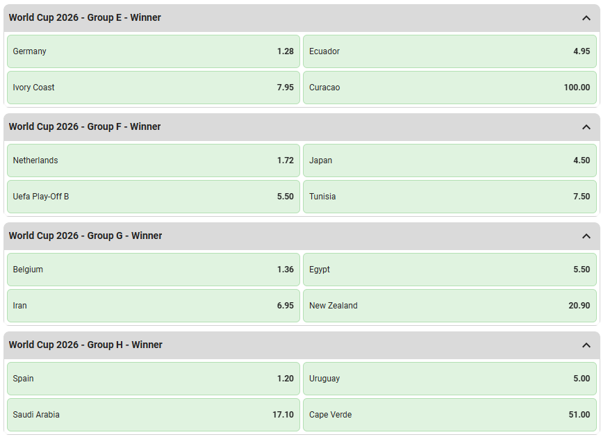 How bookmakers price World Cup group winner markets