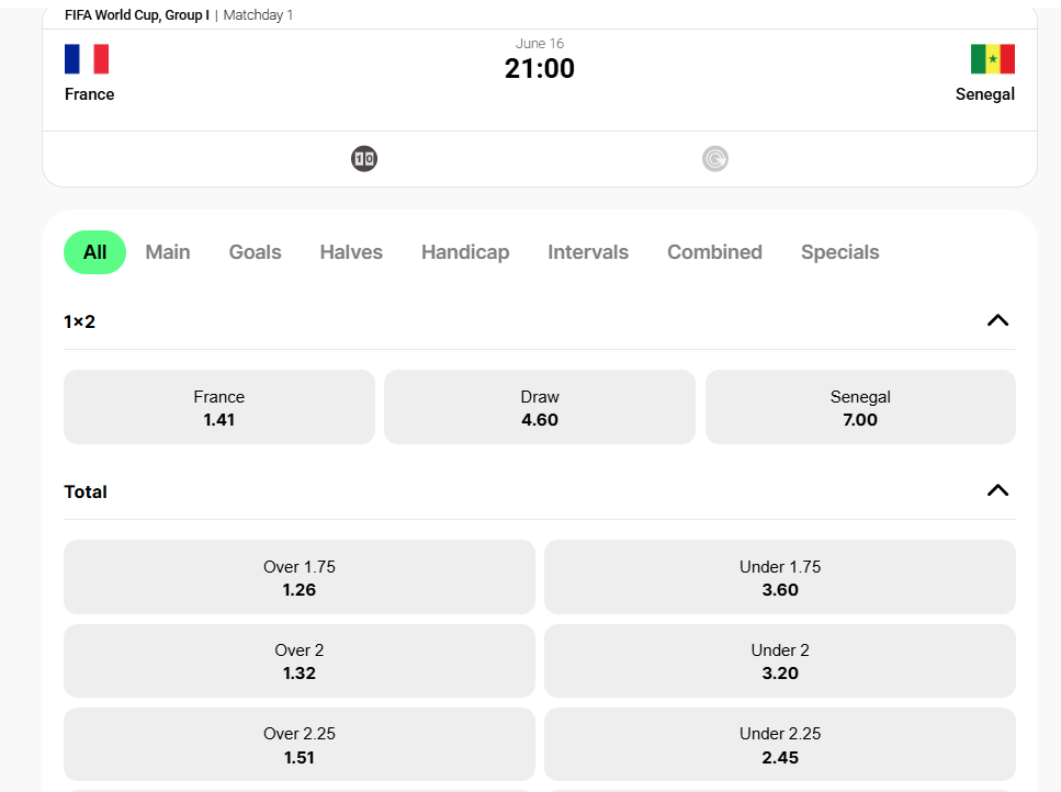 France should have too much in their tank for Senegal and should comfortably take the win. They are the bookies’ favourite at 41/100 (1.41) based on the screenshot from 10BET.co.za