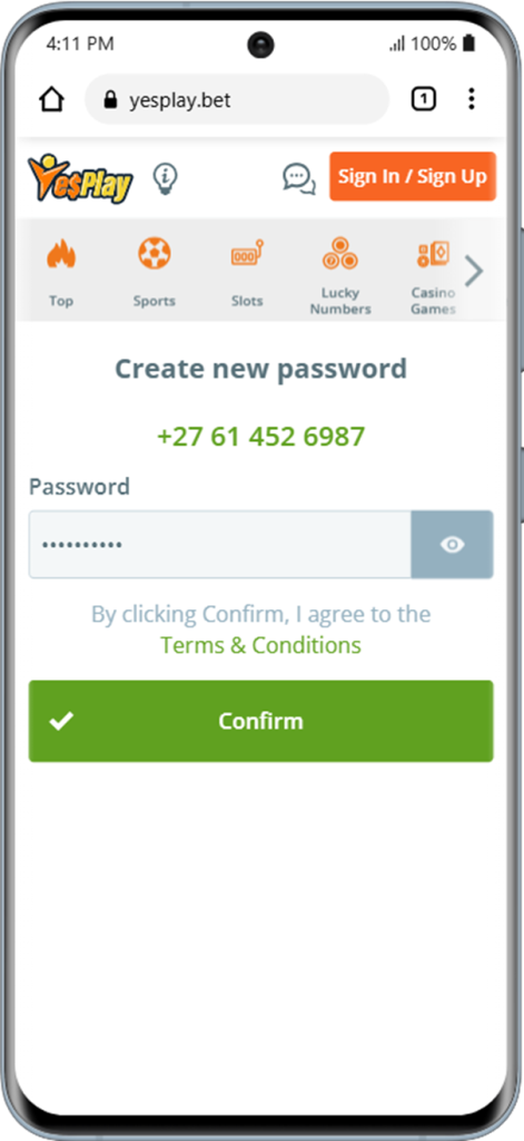5.Submit OTP (one-time PIN) and click on the Confirm button to complete your register Yesplay casino.