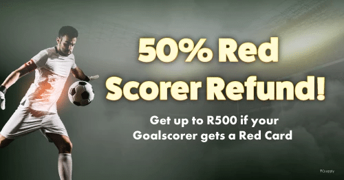 At Gbets.co.za, the unpredictability of football is fully embraced especially when it comes to game-changing red cards. To add extra value for punters, the site offers a 50% Stakeback (up to R500) if a selected goalscorer is sent off before finding the back of the net.