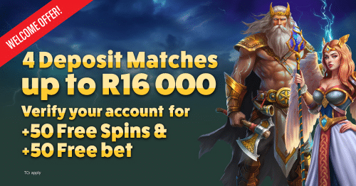 New players who register and complete account verification, while meeting the qualifying requirements will receive a R50 Free Bet and 50 Free Spins on Gates of Olympus by Pragmatic Play. The free spins must be used within five days of being credited and a minimum deposit of R25 is required before any winnings can be withdrawn.