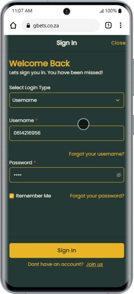 You will be prompted to enter your mobile number and password. Once you successfully enter your login credentials, click on the Sign In button to gain access to your account. Your Gbets login account is now complete.